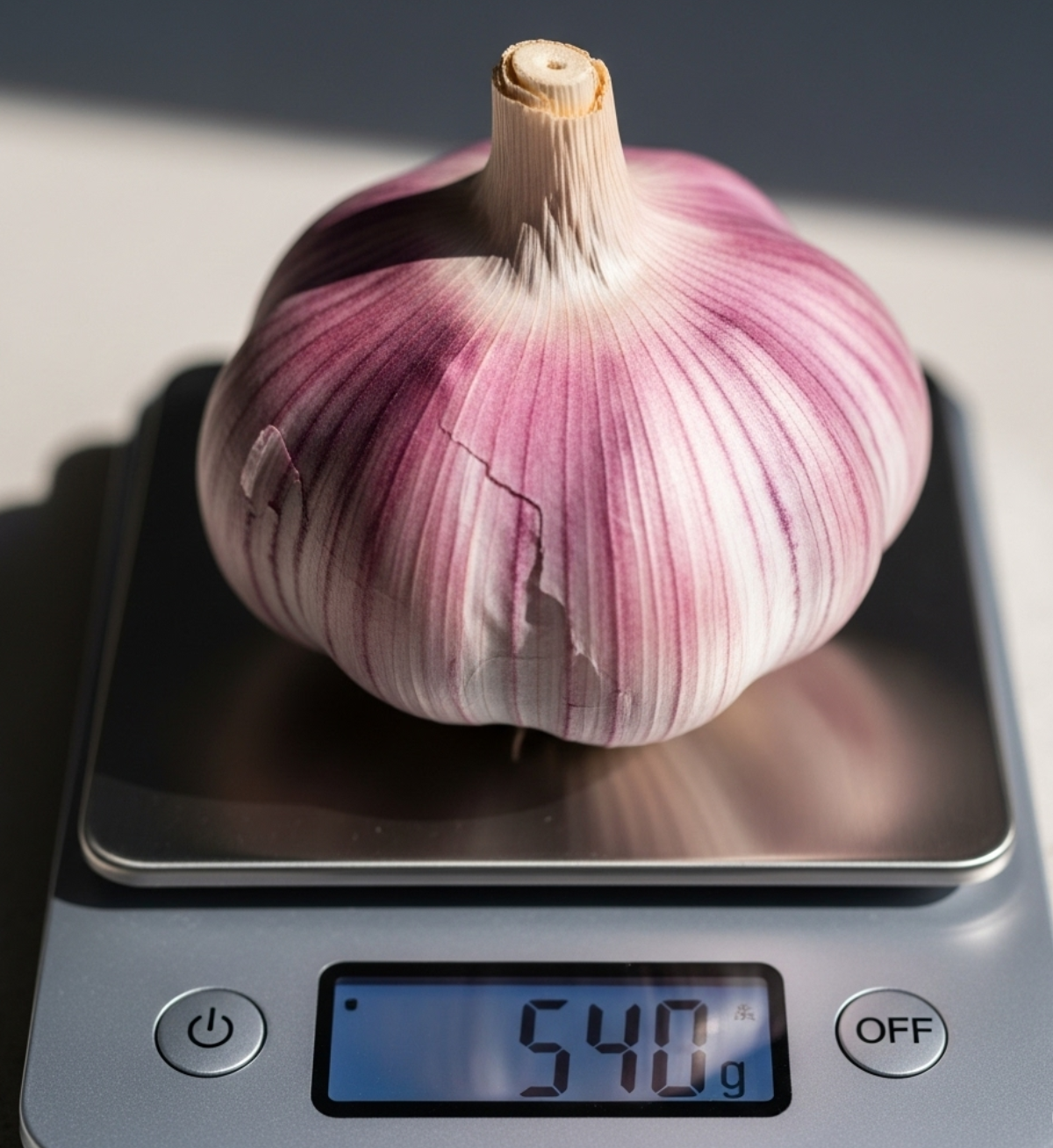 Вага голівки 420–570 грамів → Великі рівні зубчики → Пікантний та насичений смак