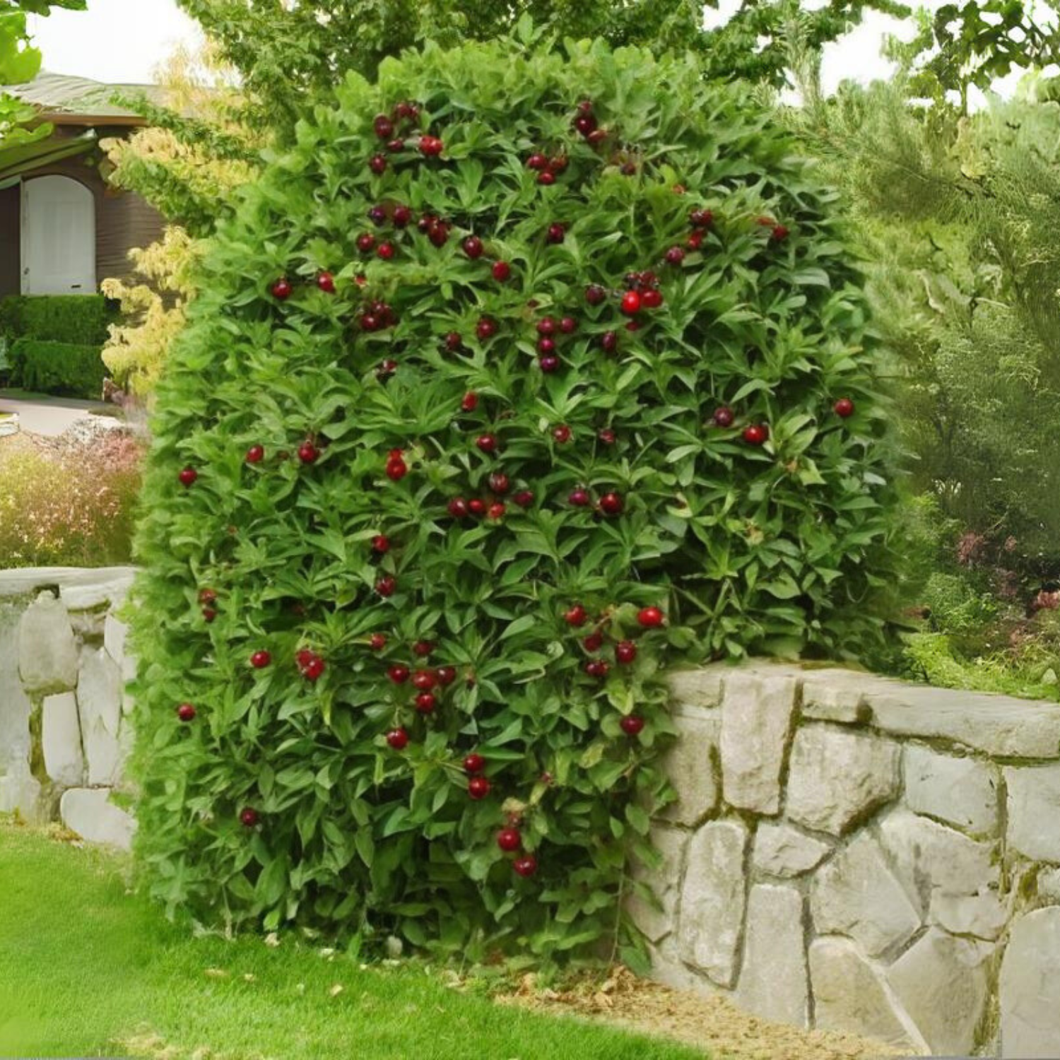 Одне дерево черешні щосезонно дає до 25 кг ягід. Перші плоди зʼявляються на наступний рік після посадки.