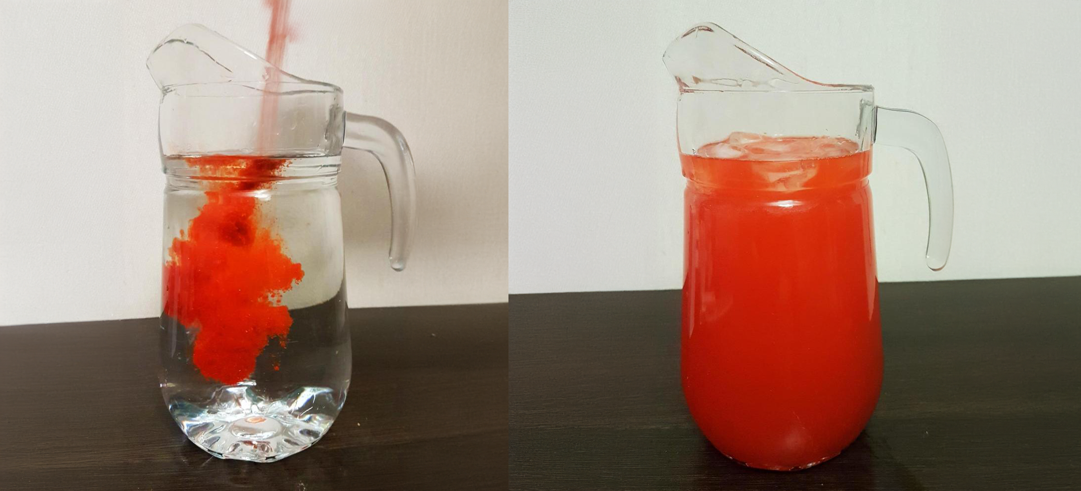 Додайте її вміст у воду. Можна обирати як звичайну магазинну, так і газовану пляшкову. Для збереження смакових властивостей, не радимо використовувати мінералізовану воду.
