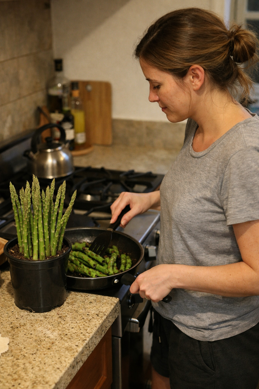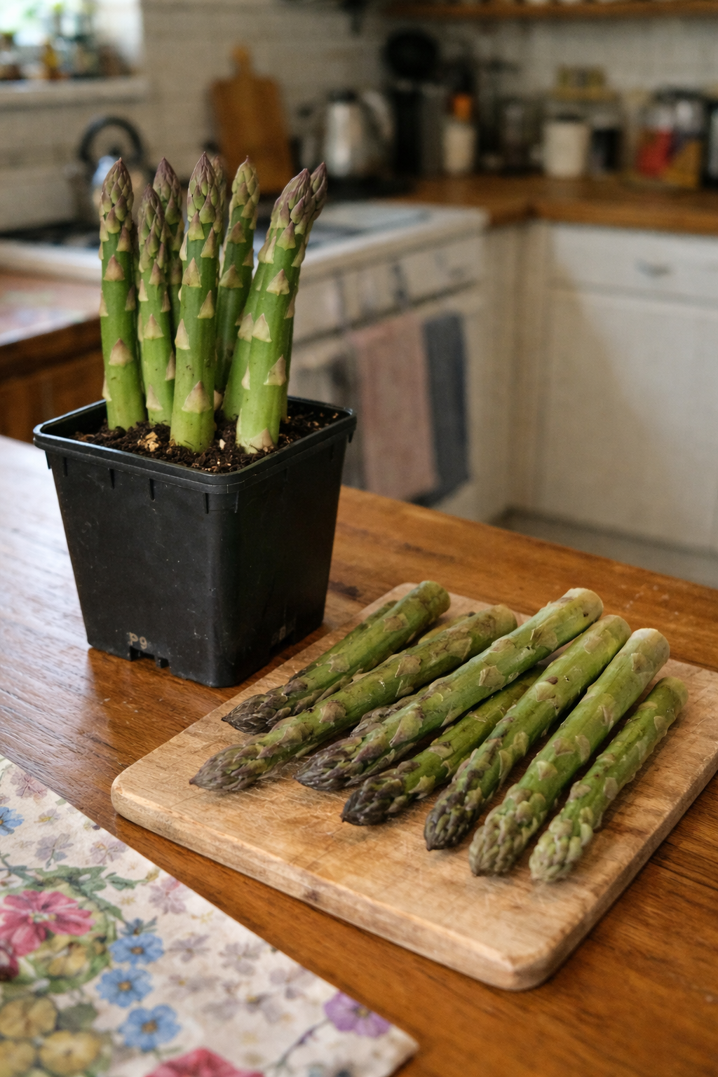 Домашню спаржу ви зрізаєте безпосередньо перед приготуванням. Вона ніжна, соковита і хрумка — не порівняти з магазинною, яка часто лежить у холодильниках днями.